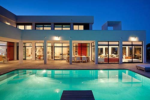 This is a stylish, two-story house, white and spacious (550 m²), located in the heart of a lush exotic garden on a fully fenced and landscaped hectare of land. The living space is extraordinary. This is a highly contemporary villa, made of rough materials and glass, with full vantage of the outdoors. The views of the grounds are diverse, and the house is completely surrounded by gardens, immense palm trees, and Mediterranean pines. This exciting combination lends to the overall ambiance. The entire site is well maintained, in a calm and safe environment.