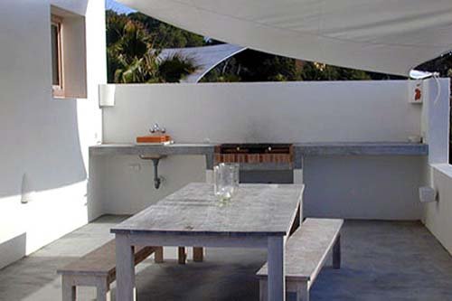 This very nice villa was recently constructed. Its contemporary architecture is spacious and has a stunning view of the sea, and legendary sunsets on the islands of Bledas and Esparta. The living areas of this house are distributed across two levels. The main level comprises a living room with fireplace, satellite TV, DVD, hi-fi stereo, and a direct access to the terraces and swimming pool. The beautiful American kitchen is very well equipped. From the dining room, one can directly access the barbecue terrace. A laundry room with washer and dryer can also be found on this floor. Upstairs, there is a double bedroom with full bathroom, three double bedrooms, and two bathrooms with showers. A dorm-style room with three bunk beds (six beds in all) has a large en suite bathroom with shower. The swimming pool measures 14×4 meters and there is air-conditioning throughout the house. A lovely holiday accommodation.
