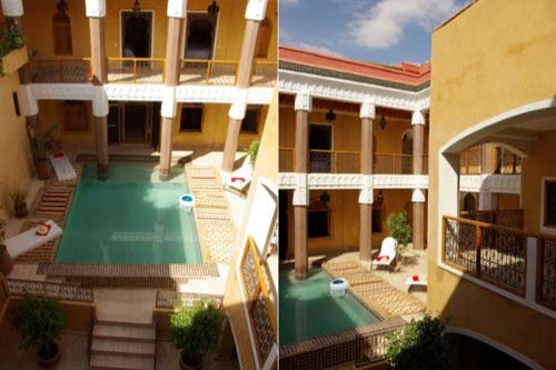 The 700-m² villa has four very comfortable bedrooms on two floors. Upstairs are two bedrooms with a terrace and unobstructed view of the palm grove and the Atlas. On the ground floor there is luxurious bedroom on the ground floor and another spacious and elegant bedroom. This thoroughly luxurious dwelling also benefits from a dining room (perfect for entertaining), a very spacious living room with fireplace, several panoramic terraces, a 25 m x 10 m swimming pool, a pool house, and Turkish baths. Several very discreet and experiences employees will cater to your needs and wishes during your stay.