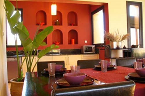 This villa is located within of a beautiful Marrakech palm grove, in a very private and safe community and with a magnificent view on the Atlas mountains. The property is part of a holiday resort comprising several independent, private luxury properties. There is a small hotel for your guests to stay, and a central spa, restaurant, and large swimming pool. The architecture of this 250-m² house was inspired by the traditional constructions of the Berbers, and meets all the modern criteria for comfort. It is located in the middle of a landscaped estate covering over 3,000 m², with a beautiful heated swimming pool situtated prettily at the center of the lawns. The house faces the Atlas and opens expansively to the terraces and gardens. You are assured of a comfortable and enjoyable holiday stay in this house.