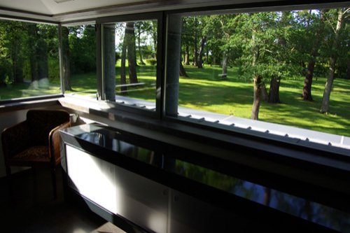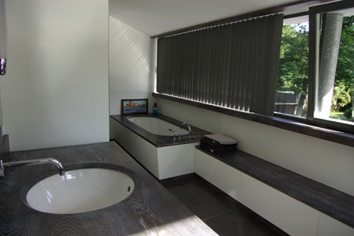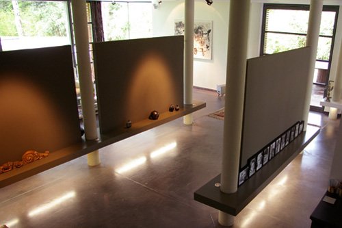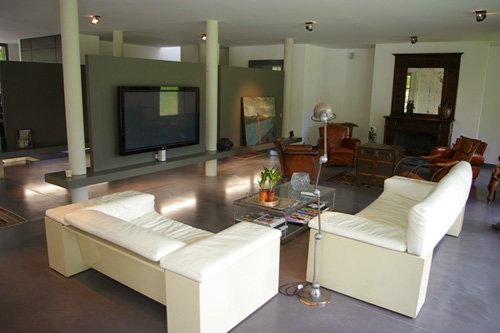 Das Bauwerk ist perfekt ausgerüstet, im puristischen Inneren dominieren weiche Farbtöne. Die Räume sind weitläufig, durch großzügige Öffnungen gelangt man direkt nach aussen und in den beschatteten Garten. Das Haus hat Stil.