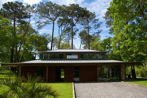 Das ist ein schönes, 400 m² großes Haus in einem Stil der an Philippe Starck’s Kreationen aus den 90er Jahren erinnert. Dieses besonders komfortable und in seiner äußeren Erscheinung mit exotischen Hölzern und Metall überaus interessant konzipierte Haus liegt in einem privaten Pinienwald, nahe den Stränden von Biarritz.