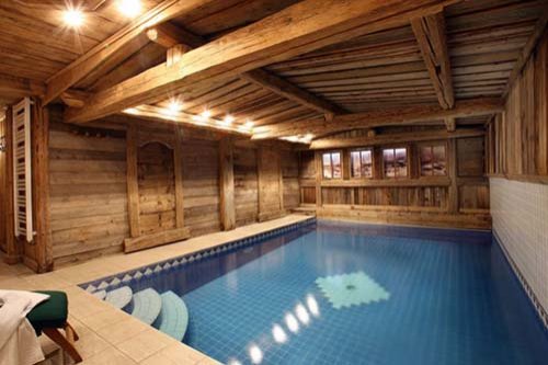 Located at the base of the ski slopes, in Courchevel 1850 in the valley of Vizelle, this luxurious chalet offers you a very high standard of living. The traditionally-built lodge has been tastefully and thoroughly refurbished while maintaining all the original authenticity. The rustic building materials and period furniture impart a warm and cozy atmosphere to the luxury, three-story chalet. With about 360 m2 of living space, an unrestricted view across the valley and the village of Courchevel, an indoor swimming pool, and private spa, this holiday rental is the perfect place to relax and enjoy.