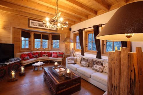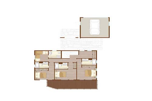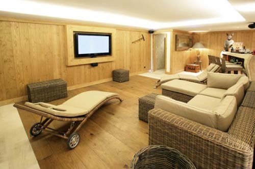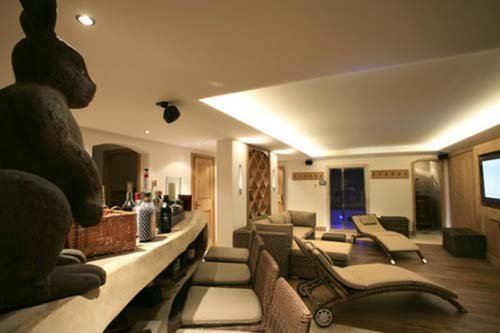 Parquet floors, cashmere blankets and bedspreads, and antique dressers harmonize with modern equipment by Siemens and Gaggenau. The fine Bose sound system rounds off this holiday experience at the height of luxury. This chalet can accommodate 10-12 persons and an additional two in an old hay shed that has been entirely transformed into a cosy two-person nest. The chalet has three double bedrooms with baths en suite and terraces, and a large luxurious bedroom with bathroom en suite and a balcony. There is also a children’s room with a bunk bed and private bathroom. There are two single beds on the mezzanine. This chalet has a Turkish bath, a relaxation area, and a bar – a true relaxation paradise. Note: The pictures shown are not contractual. Certain photos may be of chalets from the same product line that are also available for rent.