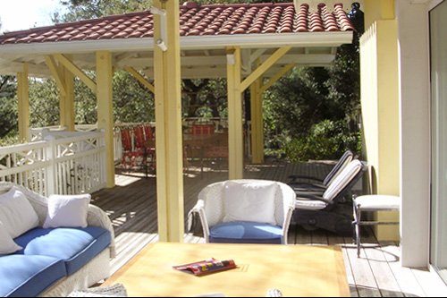 Schöne Villa des Landais, in Hossegor, zwischen See und Wald, nahe den Atlantikstränden gelegen. Die Anwesen ist sehr gut ausgestattet und bietet das ideale Ambiente für große Ferien. Der Garten ist üppig, die Einrichtung raffiniert. Schönes Reiseziel für einen Aufenthalt an der südlichen Atlantikküste. Von der Villa erblickt man den Garten und das freie Land ringsum. Terrassen sind rund um die Villa angeordnet, ein bisschen im Stil einer Hazienda, mit Pool im Herzen des Patio.