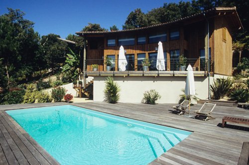 Wir bieten Ihnen hier eine schöne Architektenvilla zur Miete an. Zur Gänze aus Holz, mit direktem Blick in den Garten, öffnet sich die Villa in ganzer Länge zur großen Terrasse und zum Pool. Auch das Innere ist architektonisch sehr interessant, große Räume, gepflegte Einrichtung. Nicht zuletzt ist auch die Lage besonders vorteilhaft. Das Anwesen liegt im Herzen des schönen Golfgeländes von Seignosse, 4 km von den Stränden des Ozeans entfernt.