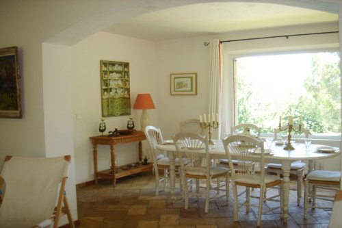 Laid out on the 100-square-meter ground floor are a living room, dining room, TV lounge, and a separate, fully equipped traditional kitchen. Private billiard room. Large windows fill the rooms with ample daylight. The rooms open onto a vine-covered pergola and garden. In the left wing of the house is a bedroom suite with private bath and dressing room. The other wing contains two bedrooms sharing a bathroom, with a separate entrance from the terrace and garden. The fourth bedroom and a shower bath are located on the second floor. The villa is very sunny, and is decorated in pleasing colors. The terraces surrounding the villa are arranged to follow the arc of the sun throughout the day; take breakfast on the tranquil south-facing terrace or enjoy a leisurely lunch in the outdoor dining area in the cool, shaded courtyard. The patio around the 15 × 6 meter swimming pool is equipped with deckchairs and parasols. There are numerous forest strolls nearby the property, for picturesque summer promenades. For golf fans, there are six courses located less than 15 minutes away. This is a wonderful vacation villa, close to Cannes and all it has to offer.