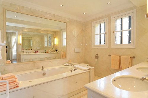Villa de 600 m² habitables, entièrement rénovée, et qui offre 7 chambres et 7 salles de bains sur trois corps de bâtiments. Dans la partie principale, une entrée et une double réception: un grand salon de 140 m² avec marbre au sol, un salon de télévision et une belle salle à manger pouvant accueillir 20 convives. Les pièces s’ouvrent sur le jardin et la piscine. A ce niveau également, un bar entièrement équipé, une cuisine professionnelle indépendante et une salle à manger en véranda ouvrant sur un patio exposé sud-ouest. Deux chambres doubles avec salles de bains ensuite et dressing au niveau 1. En mezzanine, salon de télévision et terrasse tropézienne offrant une vue panoramique. En rez-de-jardin, deux chambres doubles avec salles de bains, grand sauna et buanderie. Deux chambres doubles avec salles de bains dans une aile de la villa. Dans une autre aile, un appartement indépendant avec canapés lits et une chambre double avec salle de bain. Grande salle de jeux avec billard, baby-foot et bar ouvrant sur une terrasse. La villa est entièrement climatisée et offre un accès wifi dans toutes les pièces. Une grande terrasse panoramique entoure la piscine chauffée et offre un point de vue exceptionnel sur la mer. Patio extérieur travaillé avec des colonnes à la grecques où fleurissent les glycines. Très beau jardin paysagé et éclairé avec bassins et fontaines. Parking pour 6 voitures. Villa sous alarme reliée à une société de sécurité. Gardien sur place. Villa de grande qualité.
