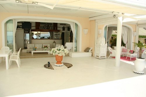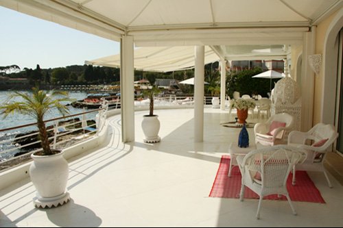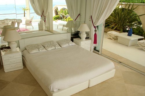 Cette maison offre un aménagement simple et pratique, l’ensemble étant orienté face à la mer. Toutes les chambres sont de plain-pied et ouvrent par des baies vitrées sur la terrasse et la mer. Au total 3 chambres doubles avec salles de bains et derrière la villa, un petit studio indépendant pour deux personnes avec salle de bains. Le salon est complètement ouvert sur la terrasse qui offre de multiples espaces de repos. Elle est immense, en partie couverte et offre un accès direct à la mer par des rochers naturels, une petite plage de sable et un ponton réalisé directement au-dessus de l’eau. Le tout est aménagé avec des transats et des parasols. La villa est louée avec les prestations suivantes, petite plage privée aménagée tous les matins, petit déjeuner préparé, un zodiac à disposition, ménage fait & surveillance assurée.