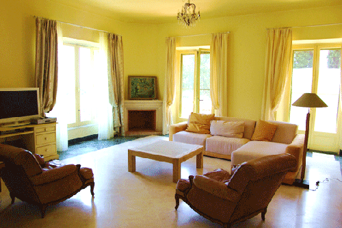 Cette villa du début de siècle (1920-1930), de 320 m² au cœur d’un jardin de 1000 m², bénéficie d’une très belle vue mer depuis les pièces du 1er et 2ème étages. Située dans les hauteurs de Super Cannes, proche du Golf Juan, dans un quartier résidentiel haut de gamme, cette demeure de charme, à la décoration qui rappelle parfois le style russe avec des lustres aux pampilles colorés, des sols en marbre, des carrelages raffinés, est parfaitement entretenue et profite d’un environnement calme et verdoyant.