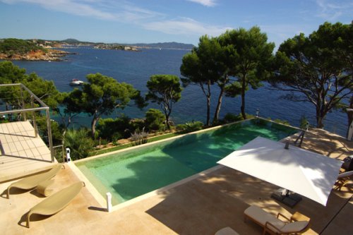 The driveway to the property leads to a large, uncovered parking area. Guests enter into a nice vestibule with separate toilets and a guest dressing room. Also on the ground floor of the residence is a spacious living room lounge that opens onto the terrace and swimming pool, an American kitchen with all the equipment needed to cook refined dinners, and a living room with large, domed picture windows that allow the view and the light to flood in. The first floor space is divided into three double bedrooms with bathrooms and toilets en suite and separate office and library room. The top floor is about 100 m² and houses a large, south-facing suite with a stunning view of the Bay of Bandol. The suite bathroom has both a shower and a bathtub. There is also a garden level, just below the main terrace, that contains two more double bedrooms with bathrooms and a small secondary kitchen facing the gardens. All bedrooms have air-conditioning and can be used as single or double bedrooms. The main terrace is replete with a heated, 15 × 7 meter swimming pool and stylish garden furniture including deck chairs, an outdoor dining set, and a mobile wooden bar. The grounds of the residence encompass a pine forest and deep, narrow creeks. The property is landscaped near the house, but the outskirts remain their wild and natural beauty. The property is fully enclosed and has a private access to a rocky bathing area. Receptions such as a wedding ceremony, anniversary, or a seminars can be organized at this location. Numerous services are available upon request. Please contact us with all your questions.