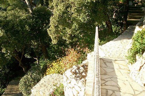 Die Räume öffnen sich regelmäßig über große Glasflächen auf die Terrassen, nach Süden, Licht und Luft im Überfluß. Der steile Garten ist Natur belassen, die Umwelt ist hier besonders geschützt. Zum Haus gehören ein halb bedachter Pool und ein kleiner Gymnastiksaal, der zu einer Terrasse und ins Grüne hinausgeht. Im Garten mit Steinterrasse finden sich ein Essplatz und ein Barbecue. Es gibt kein Visavis. Das ist ein stilvolles Haus.
