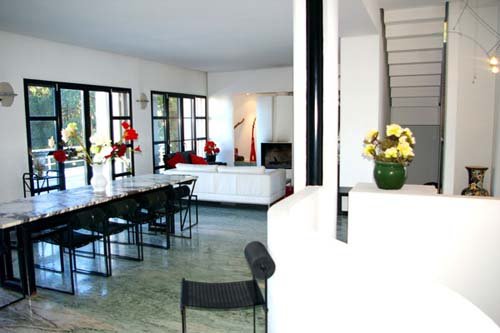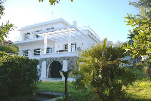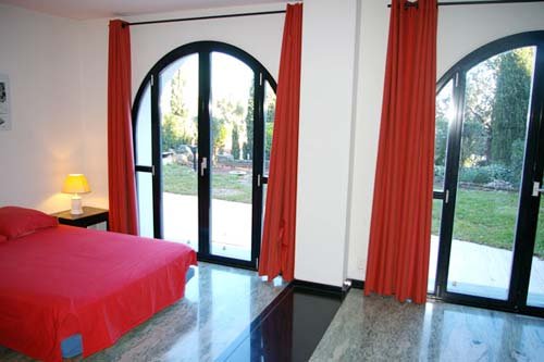 Vom Entrée, das an der Rückseite des Hauses liegt gelangt man direkt in einen schönen Salon mit Essraum und in einen weiteren Raumteil mit Bildschirm und elektronischen Anschlüssen. Zeitgenössische Einrichtung. Das Ensemble öffnet sich zur Gänze auf eine schöne Terrasse mit Blick nach Süden, auf den neu gestalteten Garten und das Meer. Voll ausgerüstete, teils professionelle, unabhängige Küche, die sich zur Rückseite der Villa öffnet, wo sich ein gemauertes Barbecue und der Pool befinden. In der oberen Etage liegt der Master Bedroom mit offenem Badezimmer mit Jacuzzi. Dieses Schlafzimmer verfügt über eine große Öffnung zu einem südseitigen Balkon und auch zu einer großen Sonnenterrasse, die im Sommer mit Sonnenschirmen und Liegen ausgestattet ist. Am unteren Niveau der Villa mit eigenem Zugang vom Gartenniveau liegen zwei schöne, unabhängige Doppelzimmer, jedes mit einem Badezimmer. Diese zwei Zimmer öffnen sich mit ihren großen Glasfronten zum südlichen Teil des Gartens und zum Meer. Auf diesem Niveau liegt auch ein weiterer TV Salon, sowie auch eine gut ausgestattete Waschküche. Beim Pool befindet sich ein voll eingerichtetes Poolhaus mit einem Zimmer mit Baldachinbett und Badezimmer. Dieses Ensemble geht direkt auf die Poolterrasse hinaus. Großer Garten mit Rasenflächen und gedecktes Parking auf dieser Seite des Hauses. Auf der Südseite des Gartens befindet sich die Gästevilla mit einem Doppelzimmer und zwei Zusatzbetten. Dieses kürzlich voll renovierte Haus verfügt auch über ein Badezimmer und eine kleine Kitchenette. Nach Süden ist dem Haus eine kleine Terrasse zum Garten vorgelagert. Im unteren Bereich des Gartens gibt es ein Zugangsportal zur Strasse und zu einer kleinen Allée, die nach einigen hundert Metern zu einem hübschen und sehr angenehmen Sandstrand führt. Die Geschäfte sind von dem Anwesen in fünf Minuten zu Fuß erreichbar.
