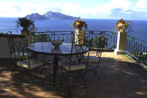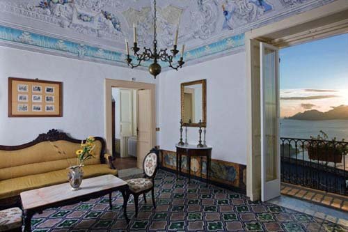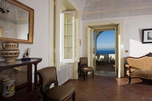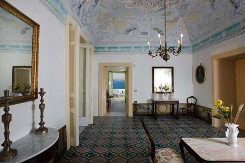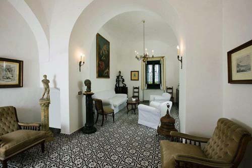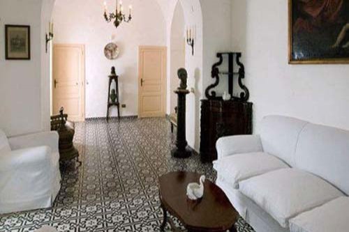 Die Villa ist auf zwei Niveaus erbaut, die durch eine Treppe aus lokalem Stein mit Mosaiken verbunden sind. Sie verfügt über fünf Schlafzimmer: ein Schlafzimmer mit drei Betten im Erdgeschoß, ein Einzelzimmer und drei Doppelzimmer in der ersten Etage. Alle Zimmer haben superbe bemalte Plafonds, schöne alte Möbel und Meerblick. Die vier Badezimmer der Villa sind angenehm und mit allem nötigen Equipment ausgestattet. In der Villa gibt es verschiedenste Salons. Der erste, im Erdgeschoß, eignet sich perfekt zur Organisation eines Cocktails oder einfach, um sich mit der Familie zu entspannen. Am oberen Niveau finden sich weitere, raffinierte Räume mit atemberaubenden Plafonds. Die Küche ist mit traditioneller, glasierter Keramik ausgestattet und verfügt noch über einen antiken Holzofen, ist jedoch gleichzeitig mit modernem Equipment bestückt, das alles bietet, um große Abendessen zu organisieren. Die an die Küche anschließende Terrasse ist mit Esstischen und Stühlen ausgestattet. Die Sonnenterrasse kann man von der ersten Etage erreichen. Komplettes Gartenmobiliar: Deckchairs, Badetücher, Solardusche. Die mit Schmiedeeisen Möbeln ausgestatteten Terrassen sind zum Sonnenbaden perfekt. Die erste Sonnenterrasse ist im Erdgeschoß direkt von der Hall erreichbar, ein intimer Ort, ideal für die Siesta an der Sonne. Die zweite Terrasse befindet sich in der ersten Etage. Sie ist sehr groß und eignet sich für Events im Freien. Ein schöner Tisch aus Majolika thront in Terrassenmitte. Auch der Garten ist ein Hort der Spiele und der Entspannung. Er ist mit feinen mediterranen Pflanzen bestückt und fällt terrassiert Richtung Meer ab.