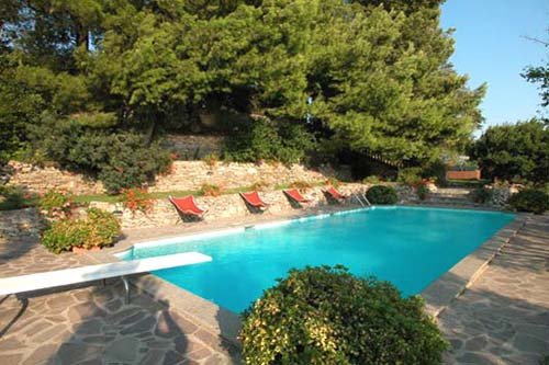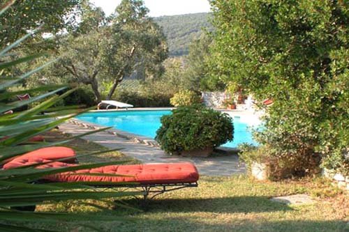 Immense hall d’entrée entièrement personnalisé. Il dessert en étoile différentes pièces et salons. Chaque fois une décoration personnalisée vous plonge dans un univers un peu à part. Le salon à l’ouest offre un bar en corner ainsi qu’un espace chill out, l’autre salon offre un accès adsl et un bureau multimédia. Un troisième salon, plus intime avec TV et Hifi-video. L’ensemble de la décoration est axé fin 16, grande période Toscane. L’ensemble a été réhabilité avec style. Grande cuisine traditionnelle entièrement équipée. Les volumes sont importants, l’air et la lumière abondent. Depuis le hall d’entrée, accès sur une superbe terrasse ombragée ouvrant elle-même sur le parc et un petit patio protégé du vent. Les espaces de repose et de détentes sont multiples. Le parc parfaitement aménagé se compose dans sa partie inférieure d’une belle piscine. Elle surplombe un champs d’olivier et offre une vue extrêmement dégagée sur les environs. Très sympa. Sur les deux étages, et environ 800 m², 10 chambres doubles avec salles de bains privatives pour chacune, coffre, air conditionné et téléphone avec lignes indépendantes. Les chambres sont grandes toutes offrent une vue sur le parc.
